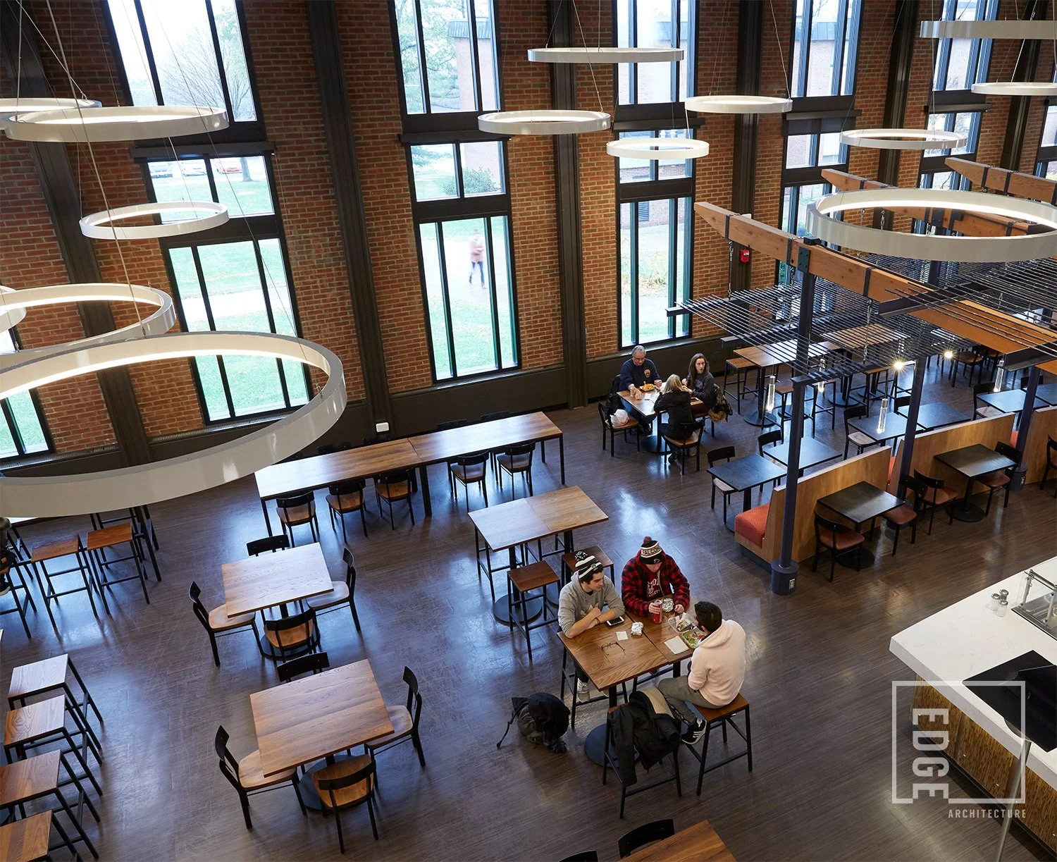 The design creates strong connections between spaces in the Dining Hall, improving the overall experience. Uplifted interiors provide healthier environments for all.