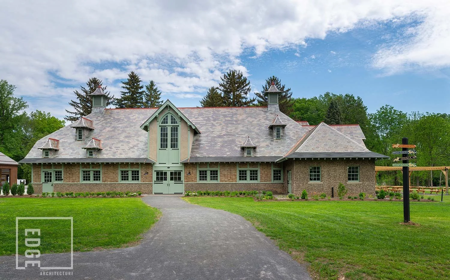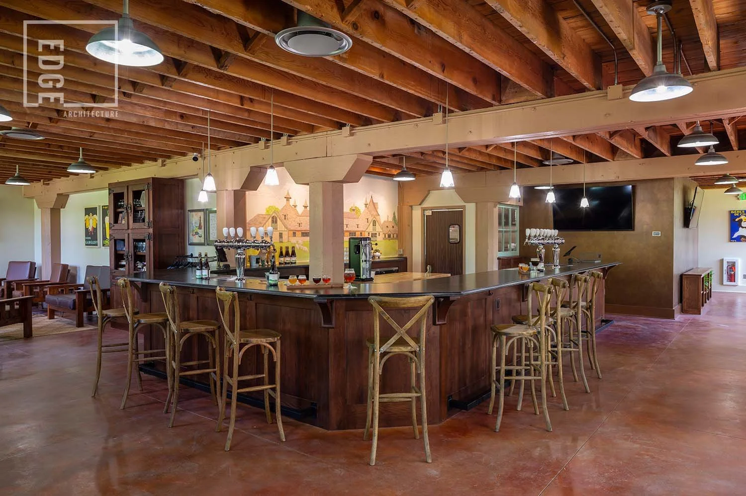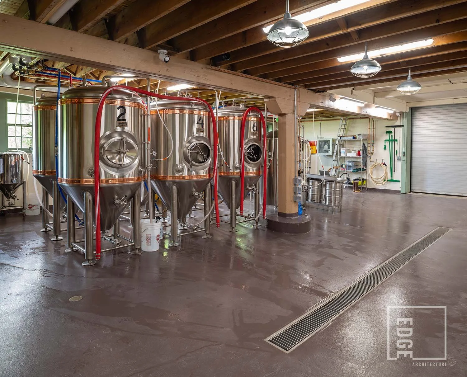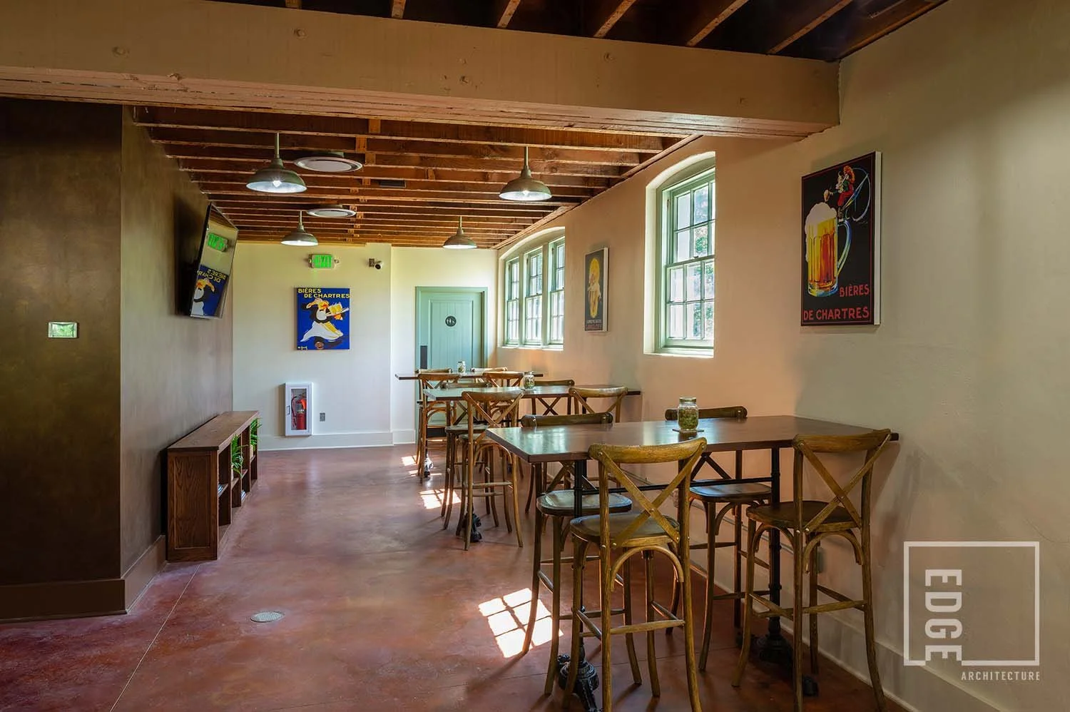 Edge Architecture provided design and engineering services for transforming a sheep barn originally built in 1909 into a showpiece brewery in Geneva, NY. The 5,700 square foot barn was converted to a tasting room, beer cellar and brewery. The original stone masonry, Vermont slate roof and French Norman-style woodwork were all restored. The main entrance is made of reclaimed, restored and rehung three-story French Doors.