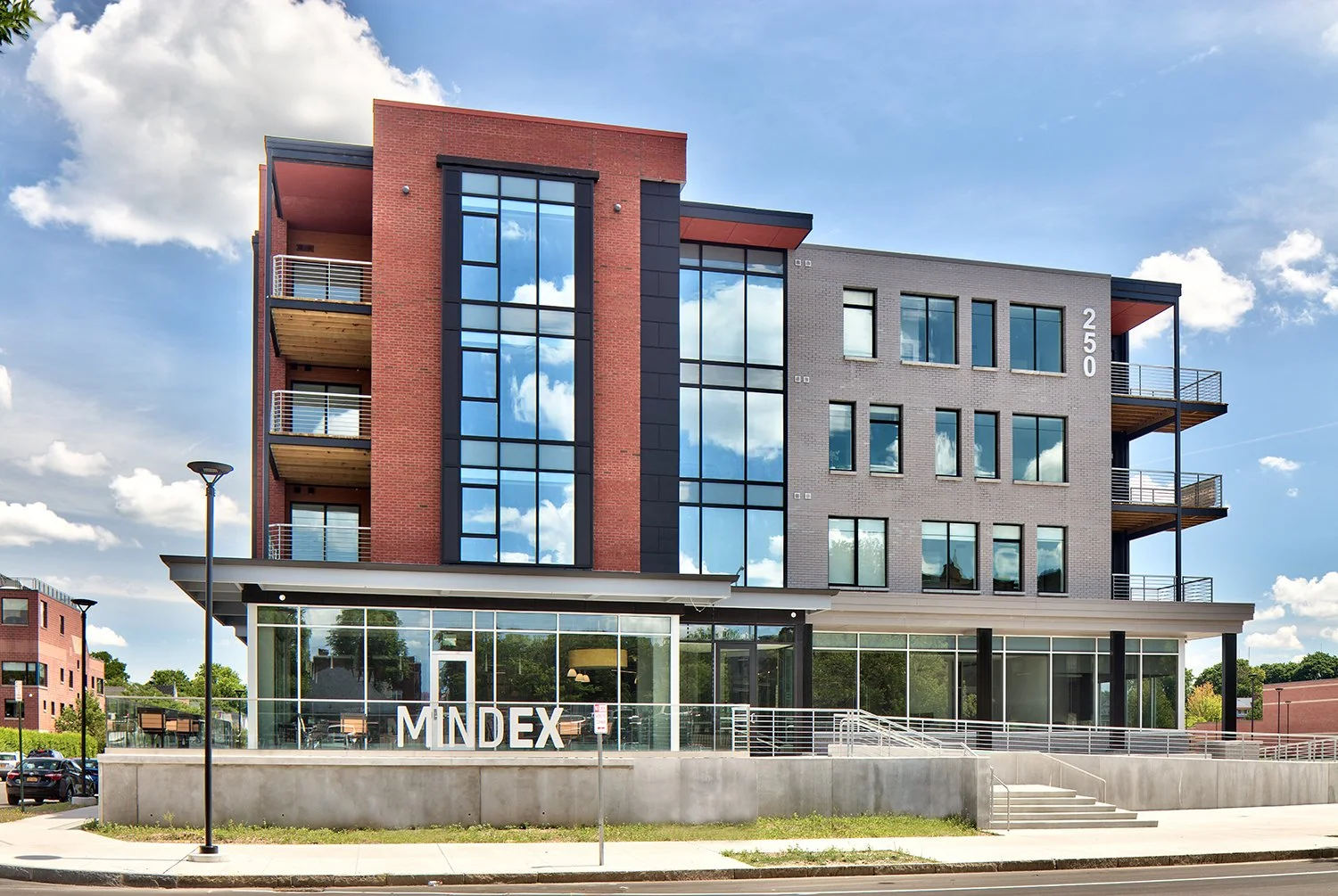 250 Alexander Street is a mixed-use building that includes a first floor office and 48 apartments on the second, third, and fourth floors. The apartments are a mix of market rate and affordable housing. A parking garage is located on the lower level. Inspiration was drawn from the local neighborhood details, including brick tone, punched windows, and the inclusion of front porches. The intent was to create a modern yet timeless building while remaining complementary to existing structures. At 78,000 sq. ft., this 4-story, mixed-use building’s design reflects the history of the local neighborhood while acknowledging its urban location. Mixed materials including wood siding (for its neighborly residential attributes), masonry (with color inspired from stone), and contrasting dark metals (to add a contemporary but timeless feel) result in a look that breaks up the overall mass while adding visual interest. Porches are recessed and decks extend out. The building meets the sidewalk by way of exterior patios and stairs, while providing privacy and security with the main level raised above the street. Careful consideration was given to the scale of the interface with the public as well as the height of the building that creates the exterior pedestrian space at the street.